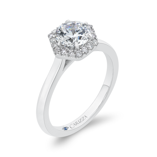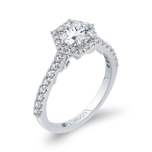 Round Diamond Hexagon Shape Halo Engagement Ring in 14K White Gold (Semi-Mount)