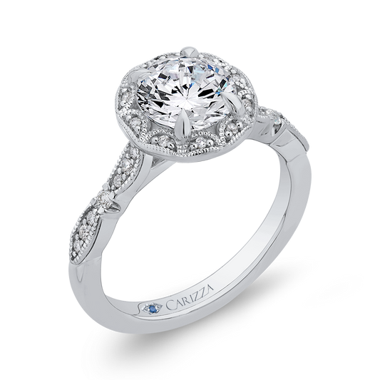 Round Diamond Halo Engagement Ring in 14K White Gold (Semi-Mount)