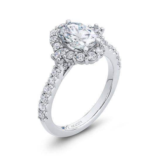 Oval Cut Diamond Halo Engagement Ring in 14K White Gold (Semi-Mount)