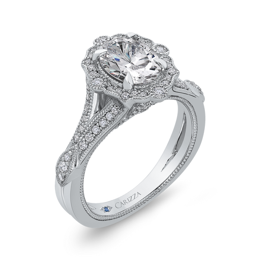 Split Shank Oval Cut Diamond Halo Engagement Ring in 14K White Gold (Semi-Mount)