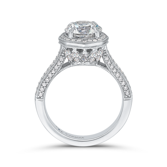 Round Diamond Halo Engagement Ring in 14K White Gold (Semi-Mount)
