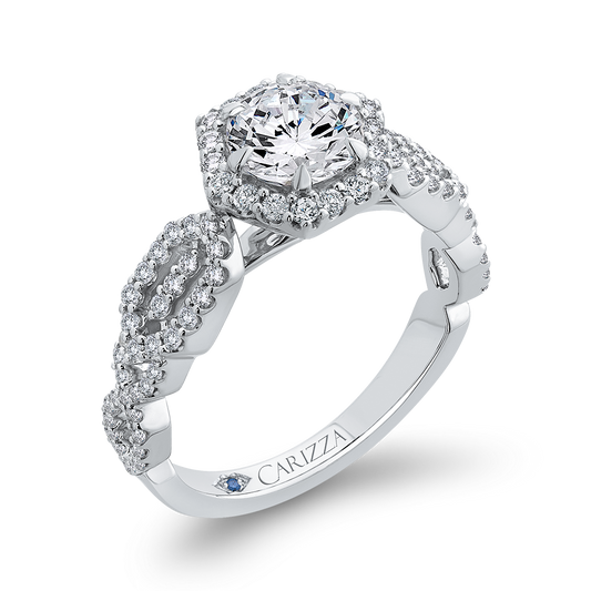 Round Diamond Hexagon Shape Halo Engagement Ring in 14K White Gold (Semi-Mount)