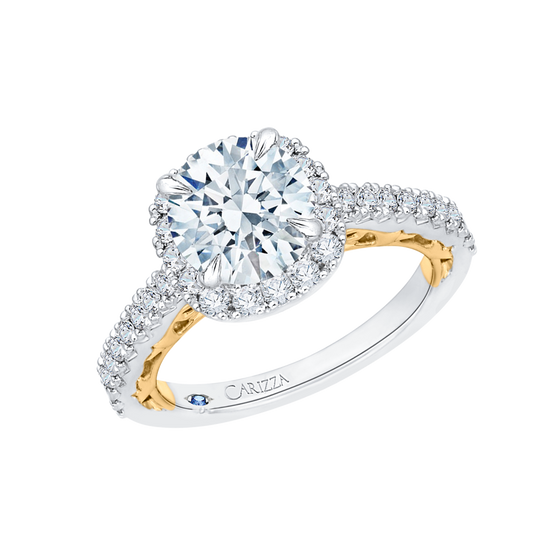 Round Diamond Halo Engagement Ring in 14K Two Tone Gold (Semi-Mount)