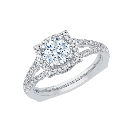 Split Shank Round Halo Diamond Engagement Ring in 14K White Gold (Semi-Mount)