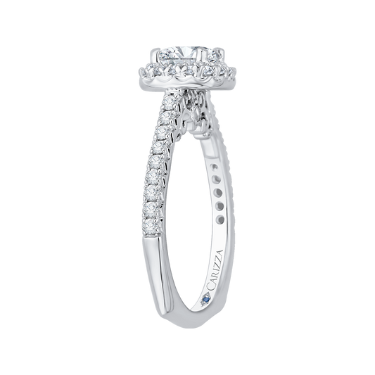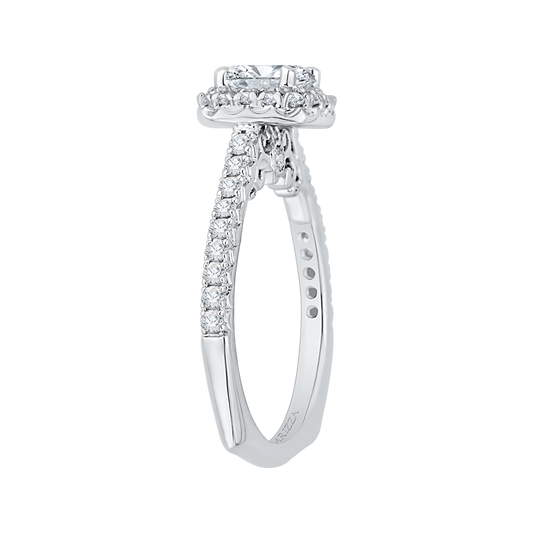 Cushion Cut Halo Diamond Engagement Ring in 14K White Gold (Semi-Mount)