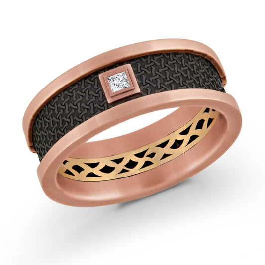Malo 14K Carbon Fiber and Rose Gold Men's Wedding Band 8mm MRDA-043-8W