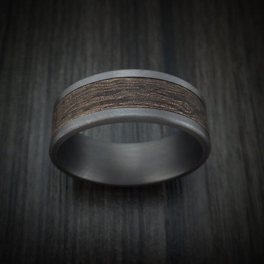 Tantalum and Wood Knot Textured 14K Rose Gold Men's Ring