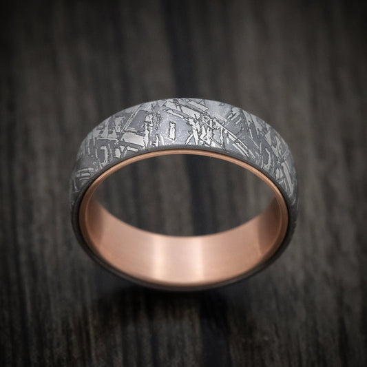 Tantalum Ring with Faux-Meteorite Pattern and 14K Gold Sleeve Mens Band