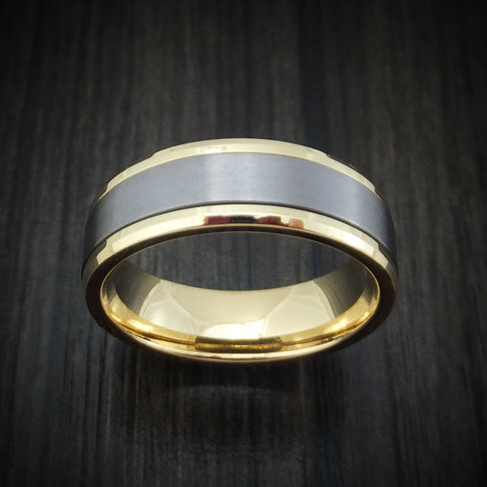 14K Yellow Gold And Tantalum Bark Design Mens Band
