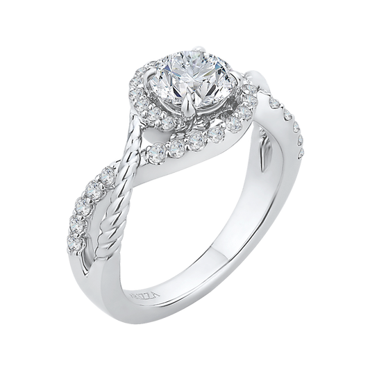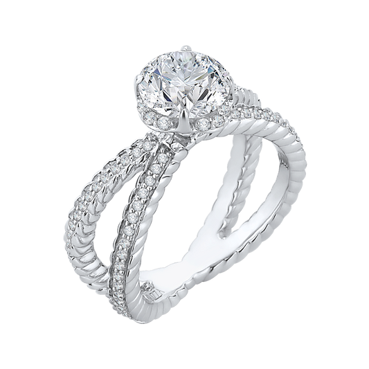 Round Diamond Engagement Ring with Crossover Shank in 14K White Gold (Semi-Mount)