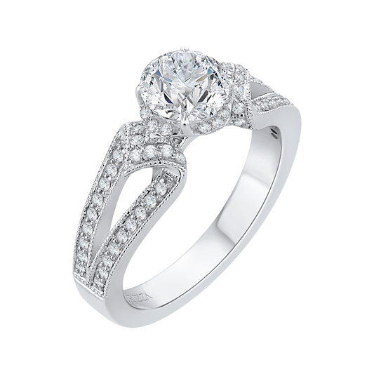 Split Shank Round Diamond Engagement Ring in 14K White Gold (Semi-Mount)