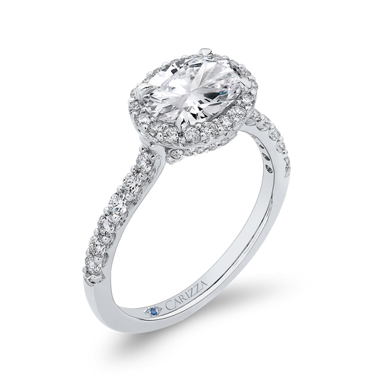 Oval Cut Diamond Halo Engagement Ring in 14K White Gold (Semi-Mount)