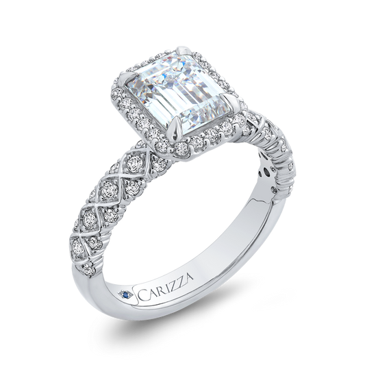 Emerald Cut Diamond Halo Engagement Ring in 14K White Gold (Semi-Mount)