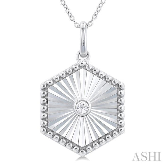 1/20 ctw Hexagon Medallion Round Cut Diamond Pendant With Chain in Sterling Silver