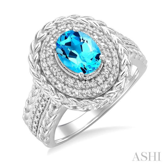 1/20 ctw Oval Cut 8X6 MM Blue Topaz and Round Cut Diamond Semi Precious Ring in Sterling Silver