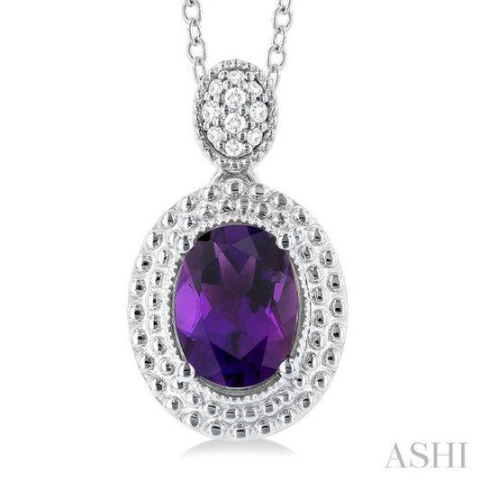 1/20 ctw Oval Cut 8X6 MM Amethyst and Round Cut Diamond Semi Precious Pendant With Chain in Sterling Silver