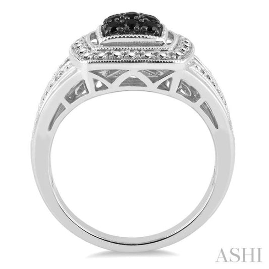 1/5 Ctw Square Shape Trillion Cut Black Diamond Ring in Sterling Silver