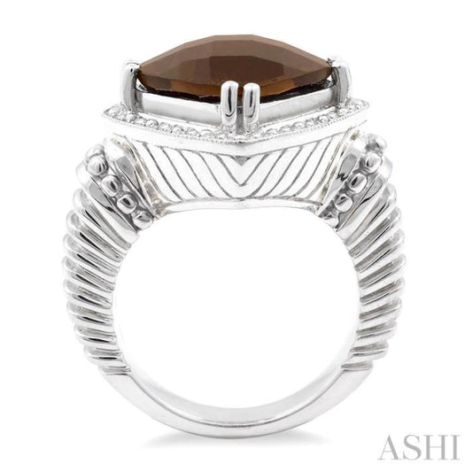 12X12MM Cushion Checker Smoky Quartz and 1/20 Ctw Single Cut Diamond Ring in Sterling Silver