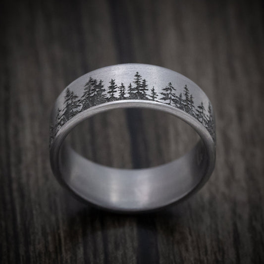 Tantalum Men's Ring with Spruce Pine Tree Design Pattern