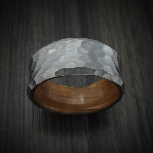 Hammered Tantalum Concave Men's Ring with Wood Sleeve Custom Made