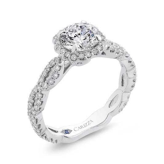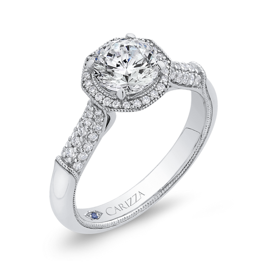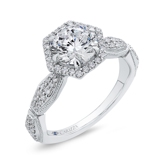 Round Diamond Halo Vintage Engagement Ring in 14K White Gold (Semi-Mount)