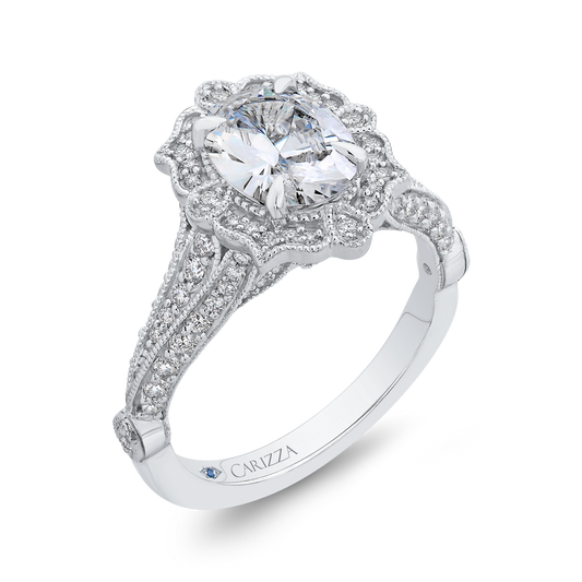 Oval Cut Diamond Halo Vintage Engagement Ring in 14K White Gold (Semi-Mount)