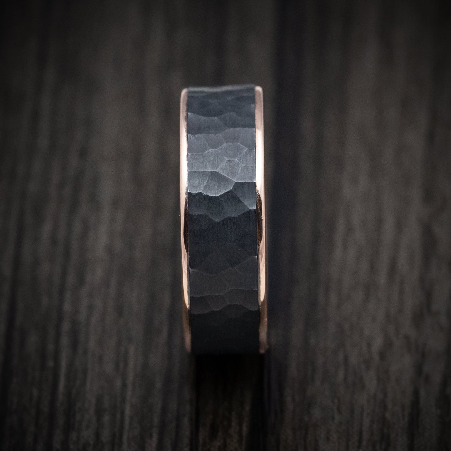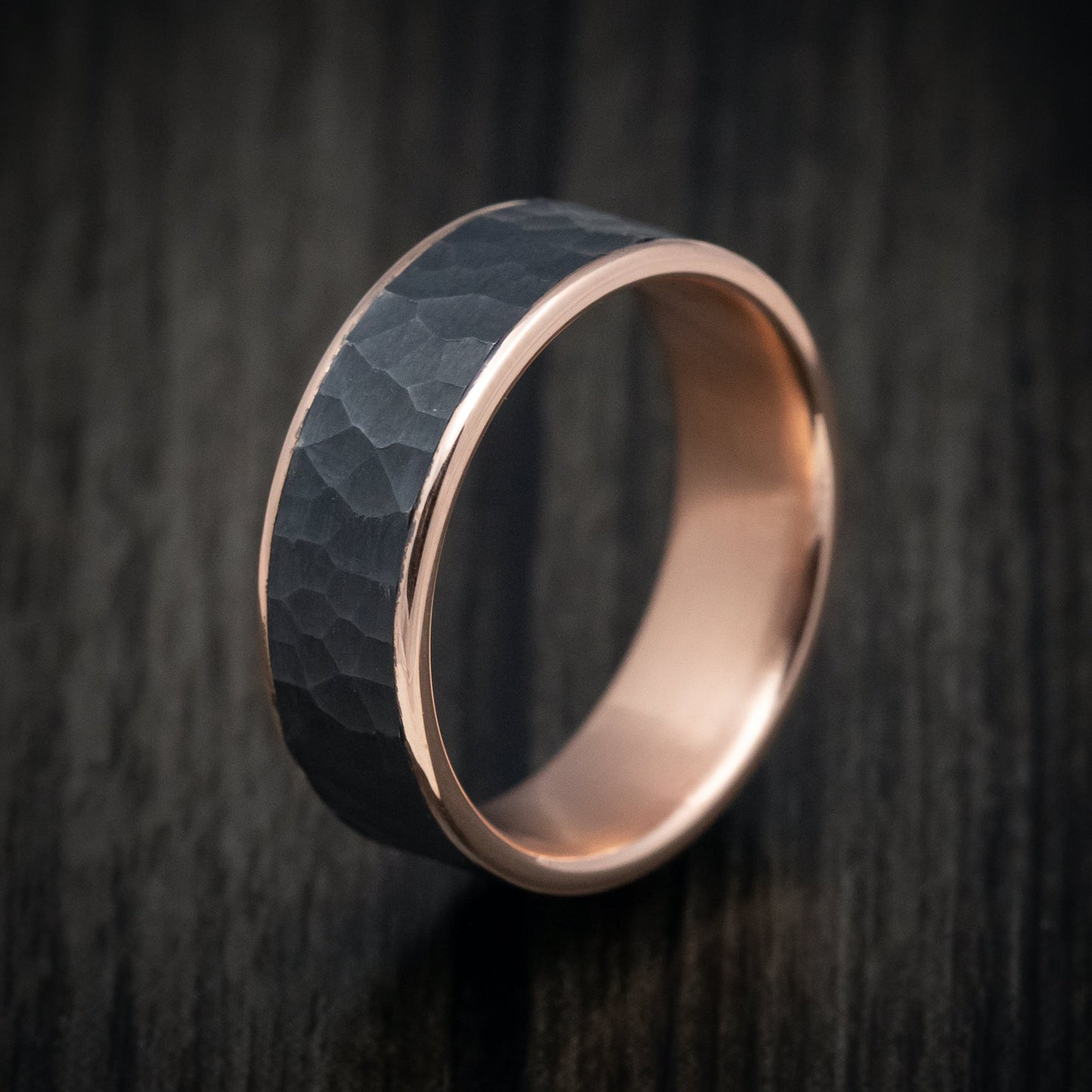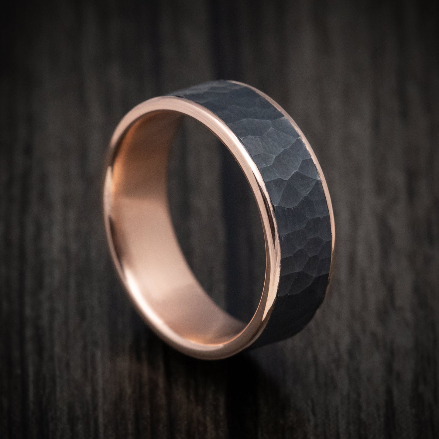 14K Rose Gold and Hammered Darkened Tantalum Mens Ring