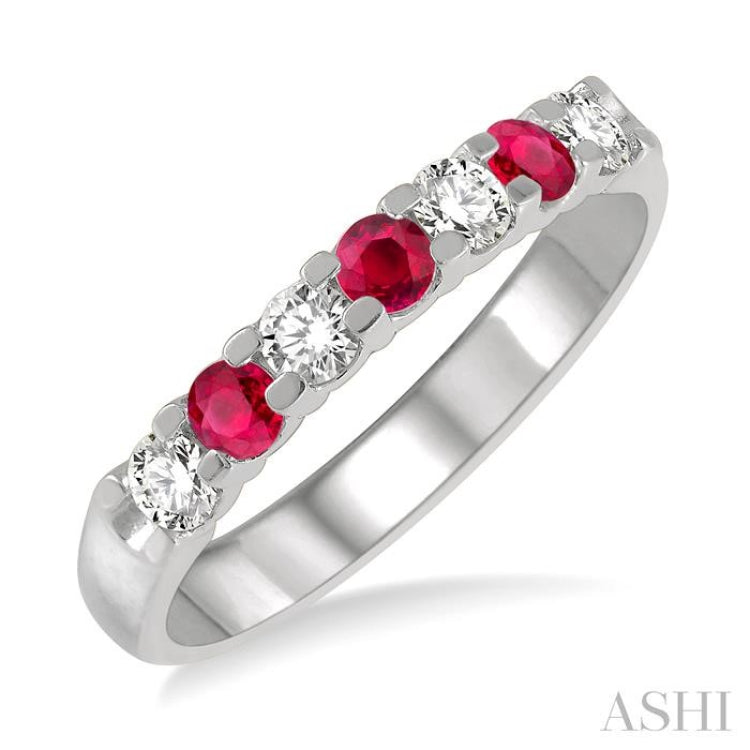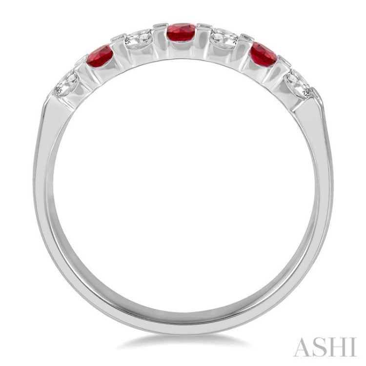 1/4 ctw Round Cut Diamond and 2.6MM Ruby Precious Wedding Band in 14K White Gold