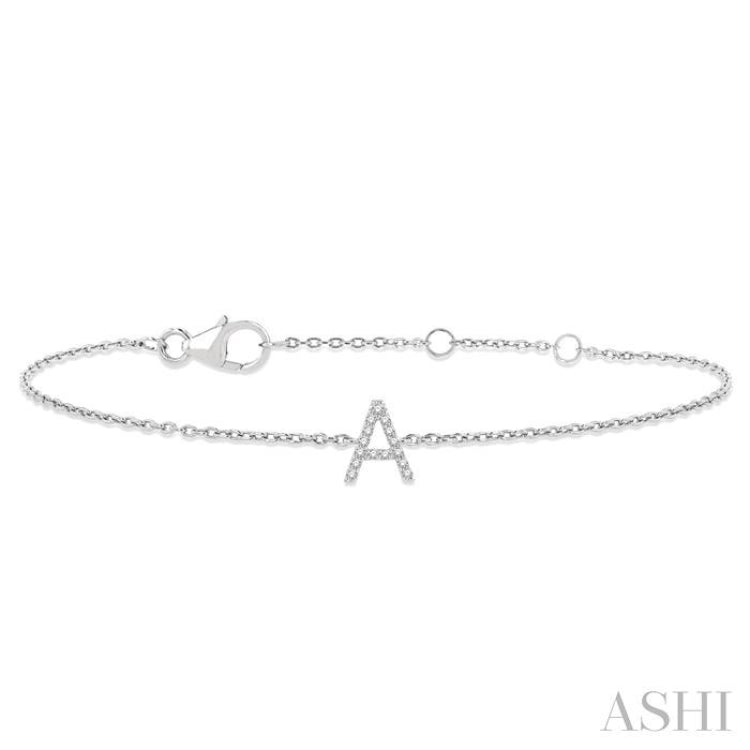 1/20 ctw Initial 'A' Round Cut Diamond Bracelet in 10K White Gold