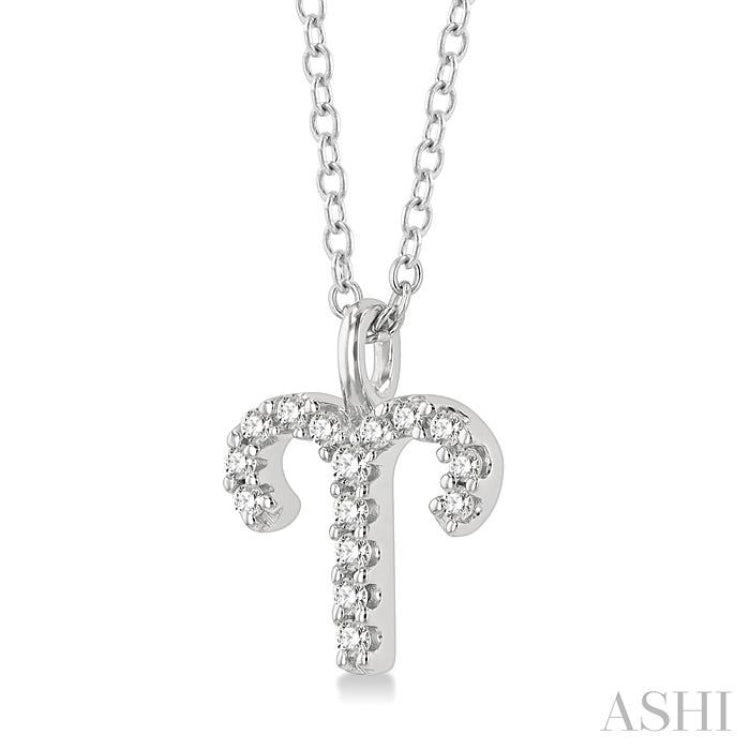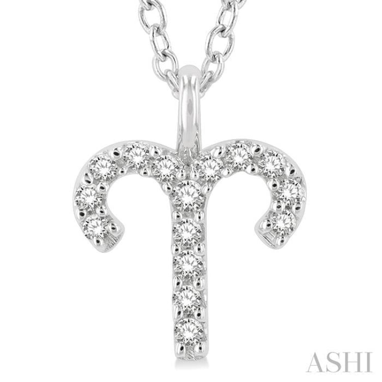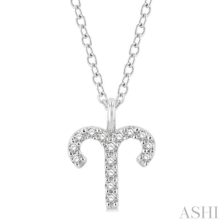 1/10 Ctw Aries Round Cut Diamond Zodiac Pendant With Chain in 14K White Gold