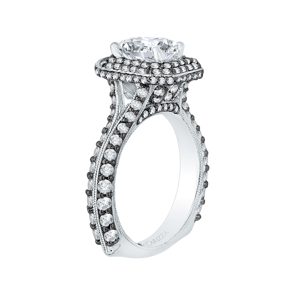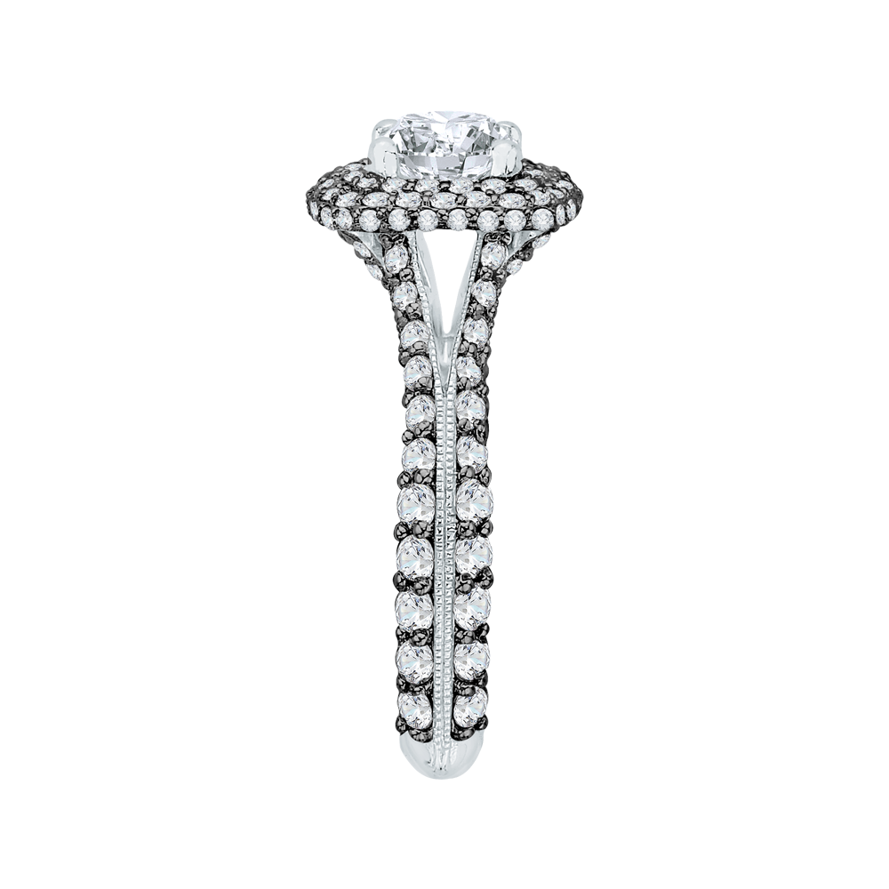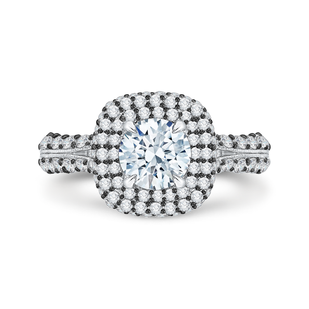 Black and White Rhodium Tips Diamond Double Halo Engagement Ring with Band in 14K White Gold (Semi-Mount)
