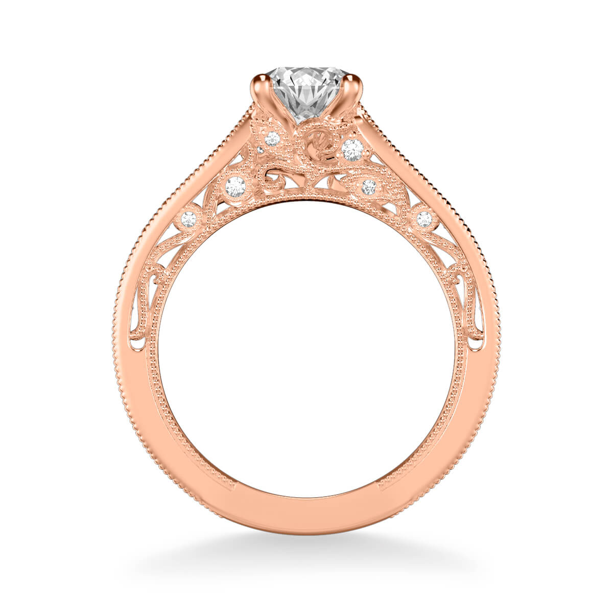 This Side Stone Diamond Engagement Ring from our Heritage Collection is adorned with unique and intricate styling at every angle. The sides reveal intricate floral filigree diamond accented scrollwork inspired by designs from our historical archives, and the diamond and milgrain accented band heightens its elegance.