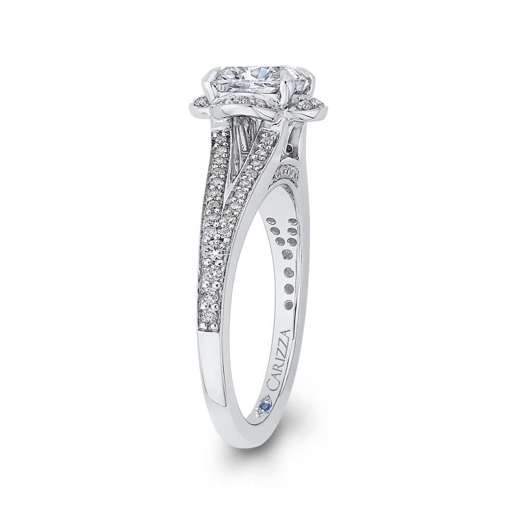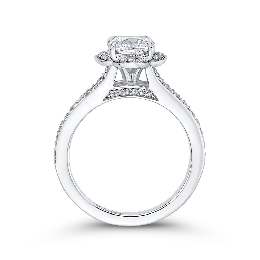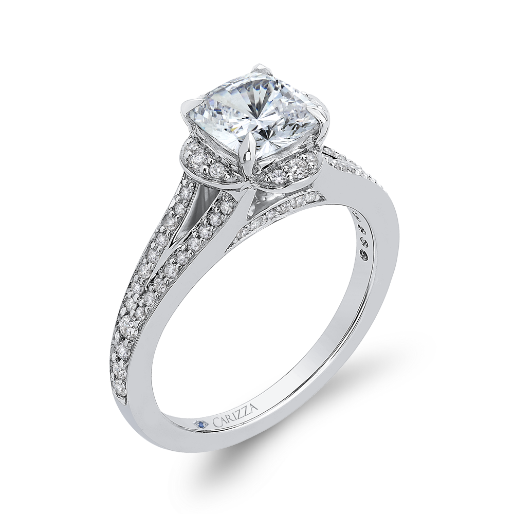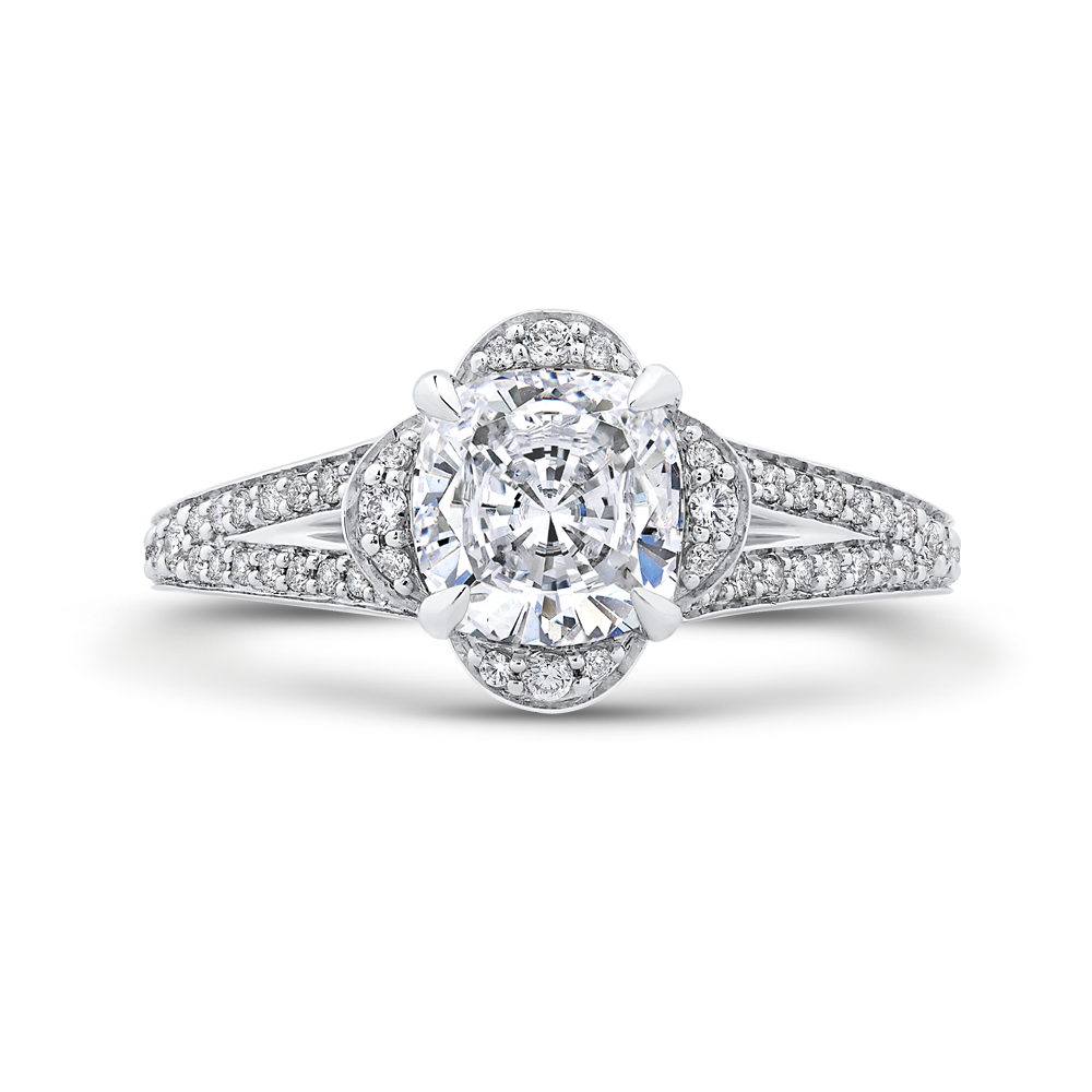 Cushion Cut Diamond Cathedral Style Engagement Ring in 14K White Gold (Semi-Mount)