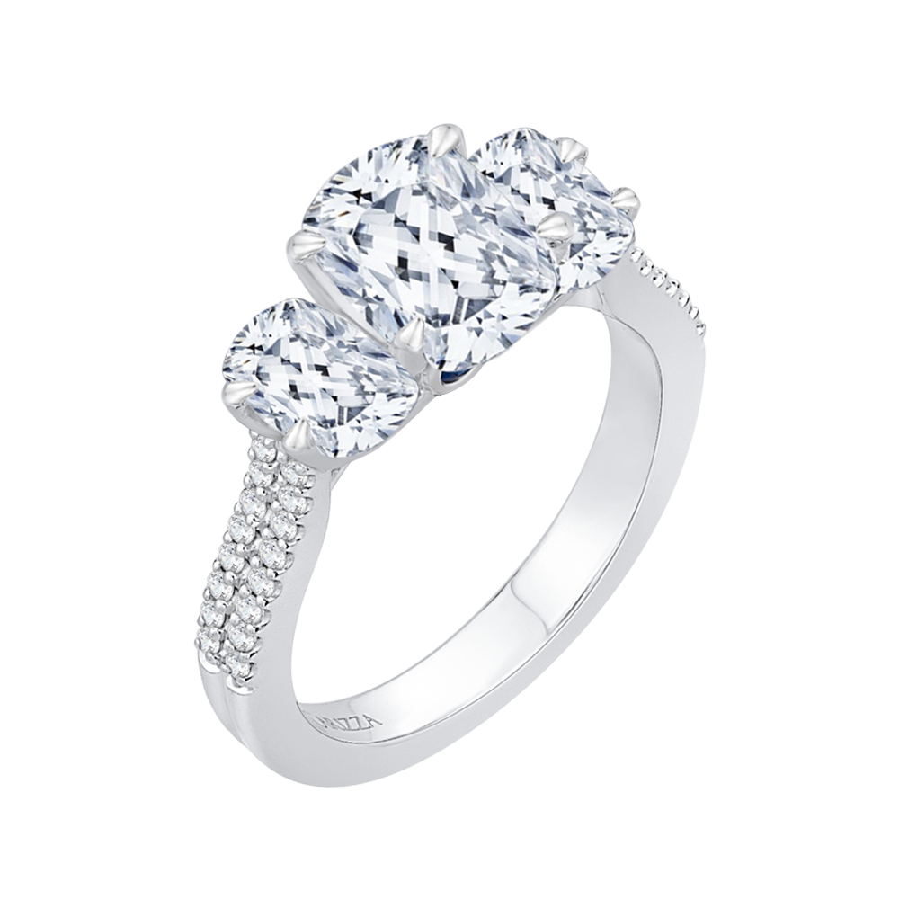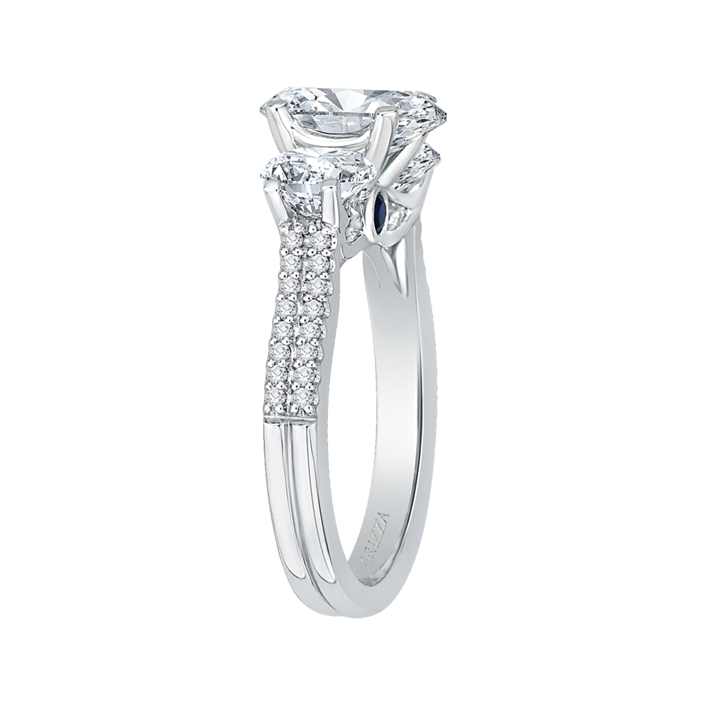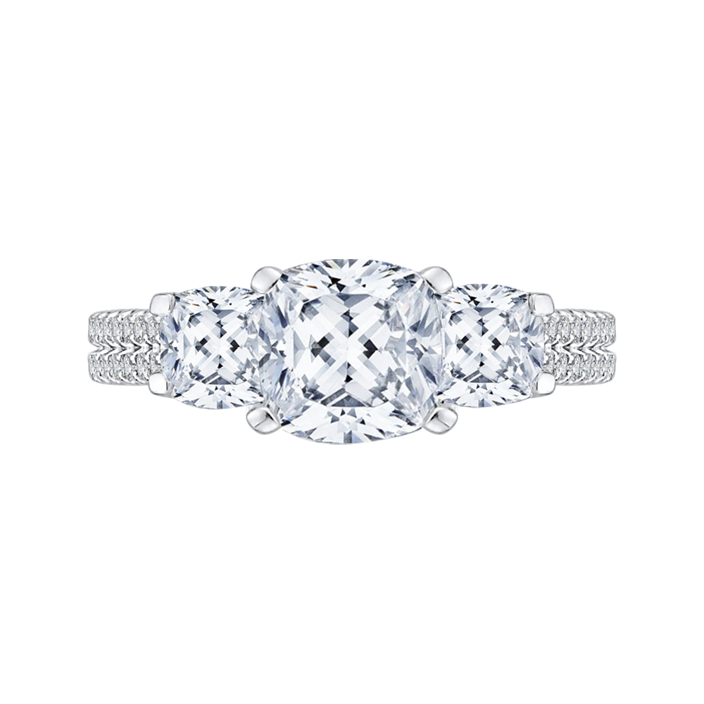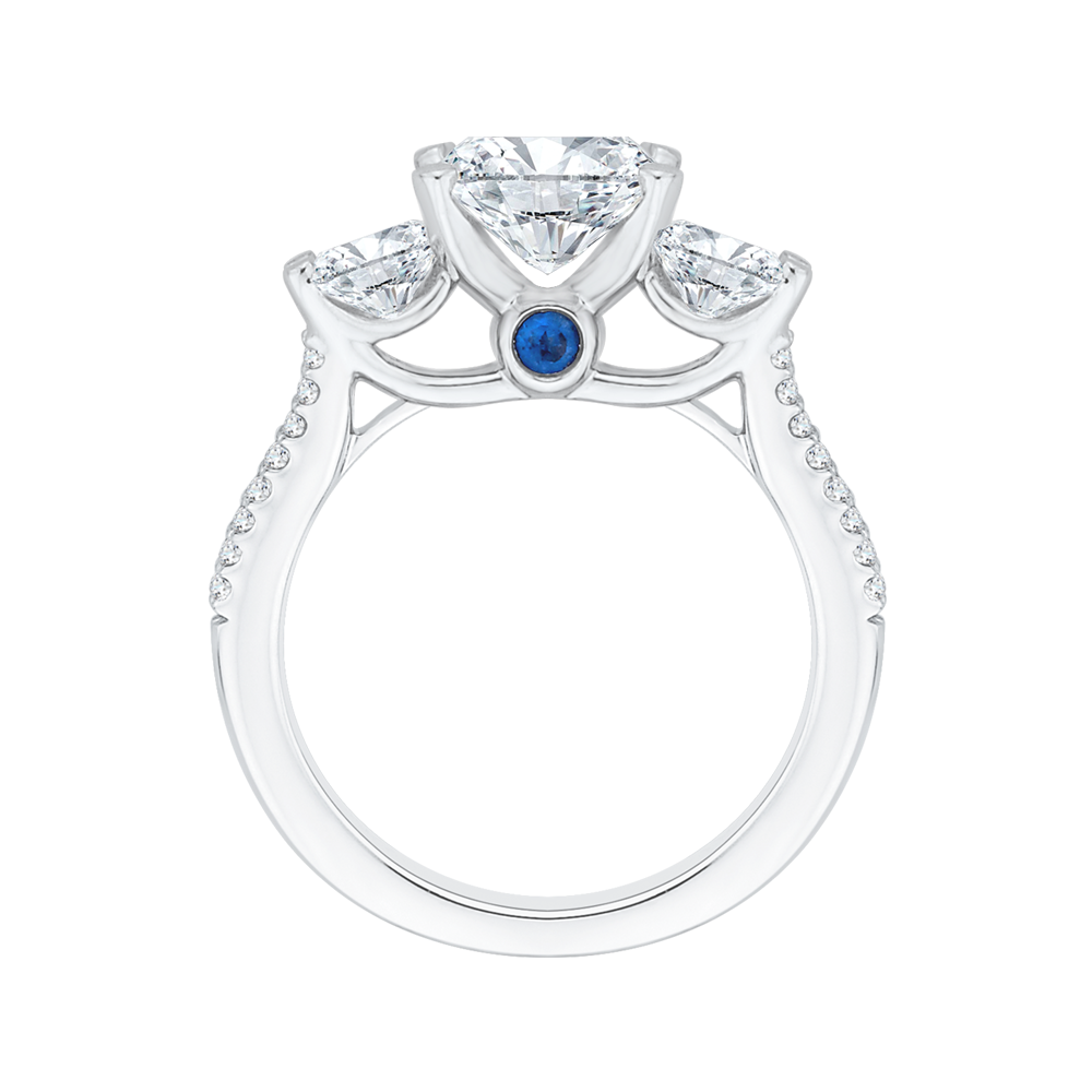 Cushion Cut Diamond with Sapphire Three-Stone Cathedral Style Engagement Ring in 14K White Gold (Semi-Mount)