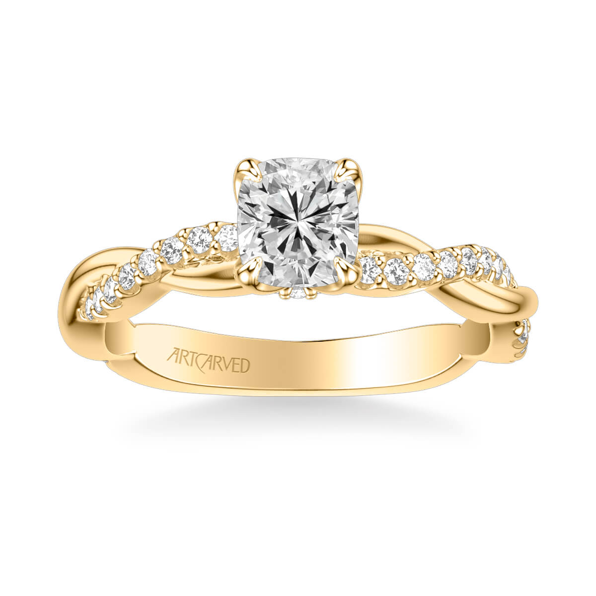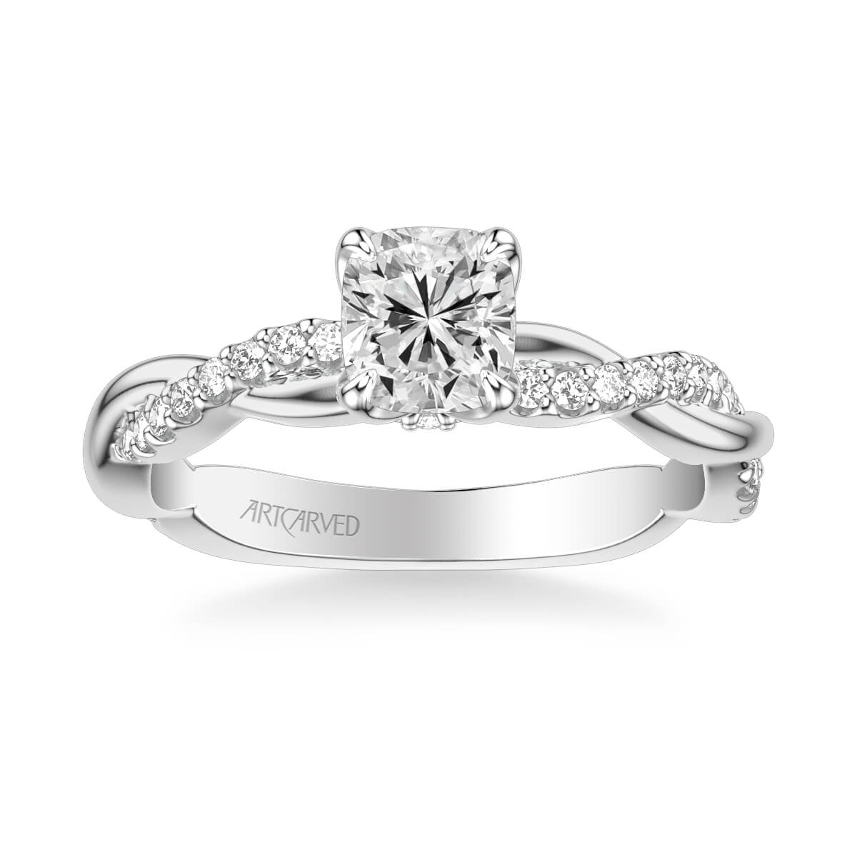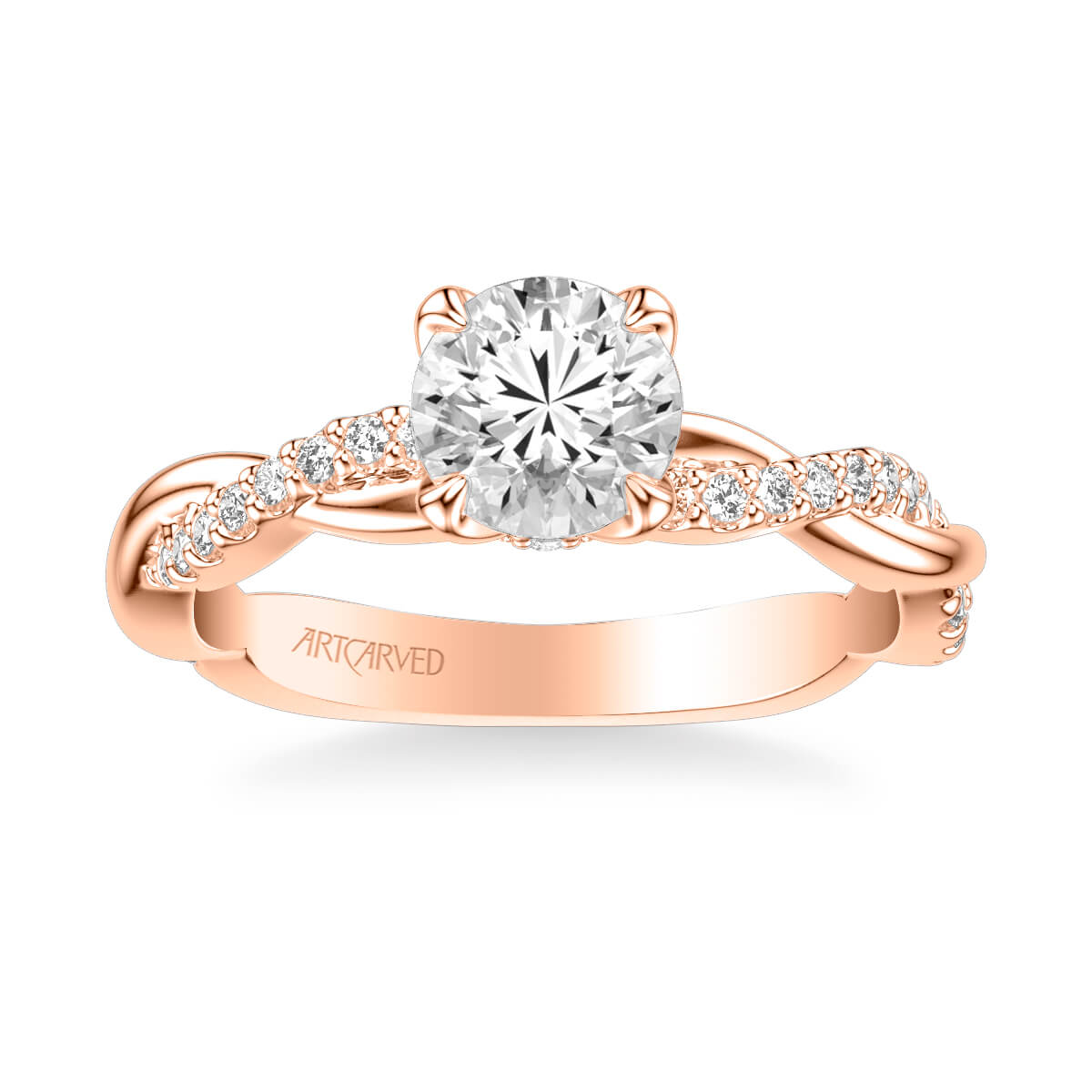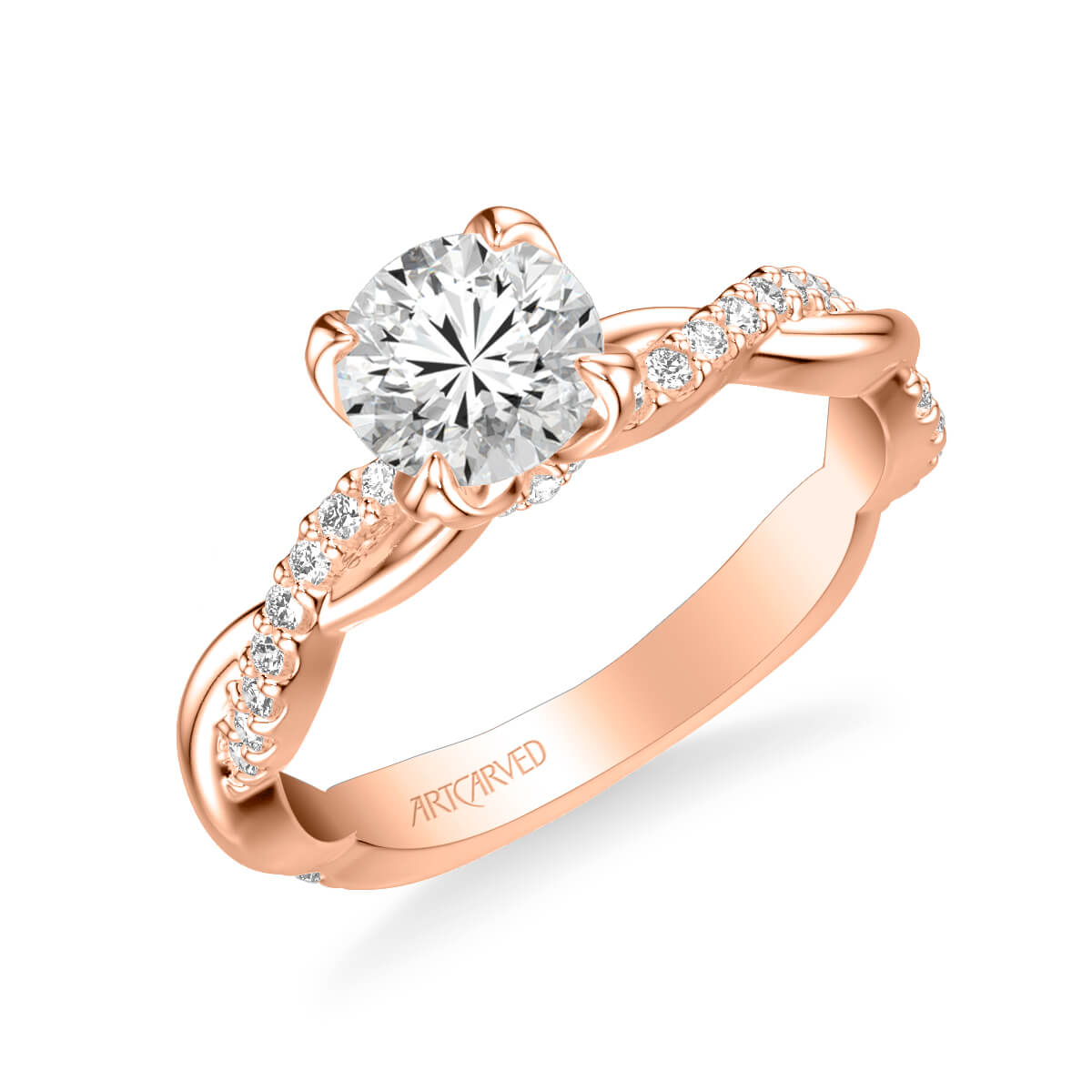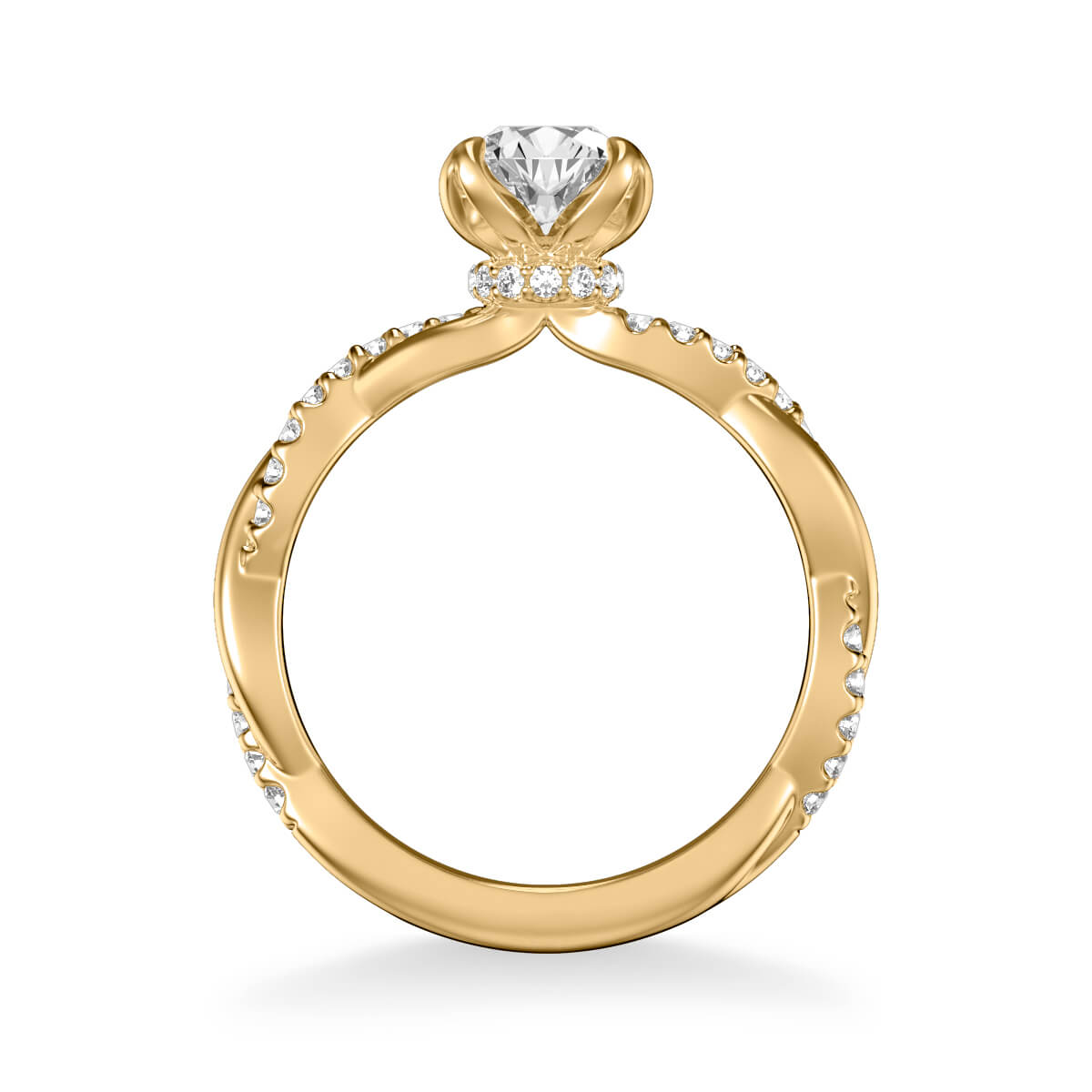 This Side Stone Diamond Engagement Ring is like Spring on your finger. A delicate petal basket nestles the center diamond. With a diamond collar and diamond and polished twist band, this style will brighten up every day.