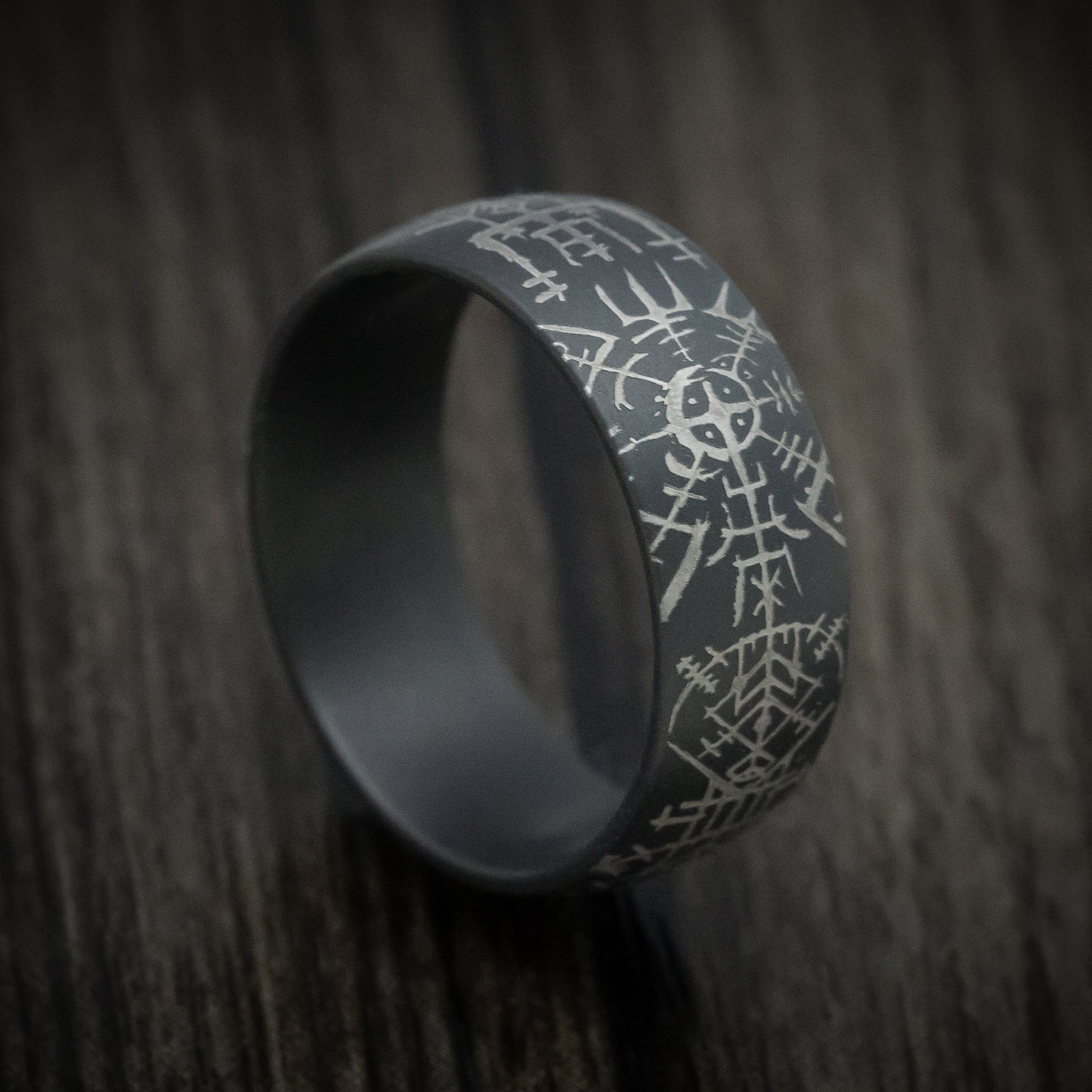 Darkened Tantalum Viking Compass Design Men's Ring Custom Made Band