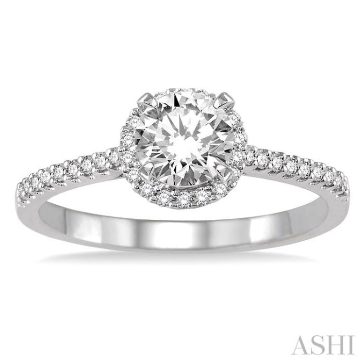 1/2 Ctw Diamond Engagement Ring with 1/4 Ct Round Cut Center Stone in 14K White Gold