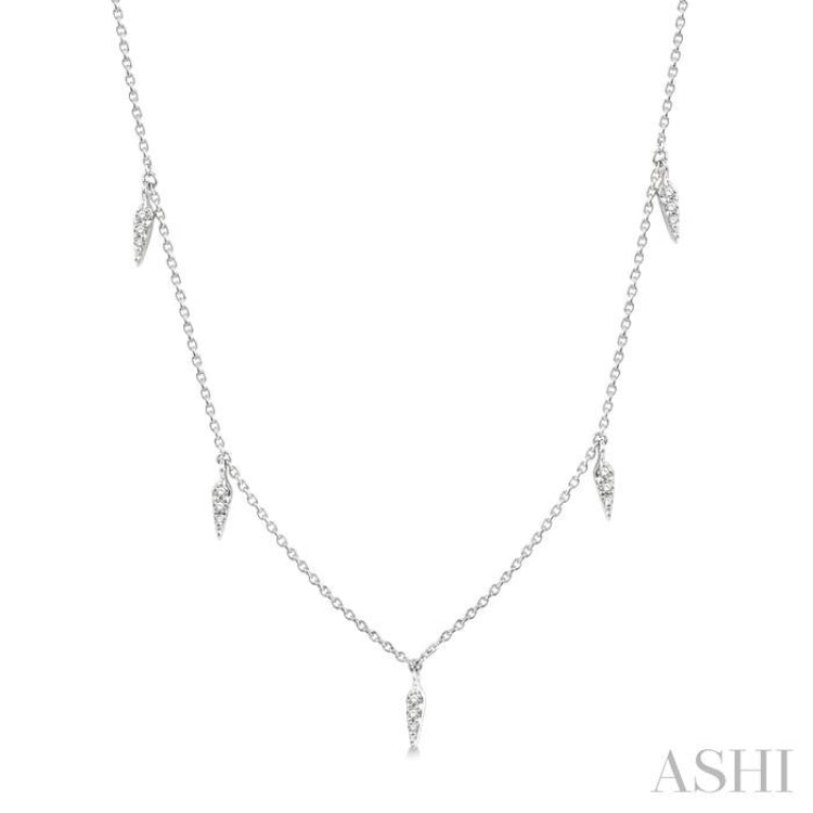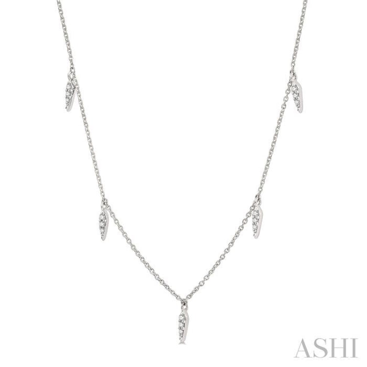 1/10 Ctw Spearhead Mount Round Cut Diamond Station Necklace in 14K White Gold