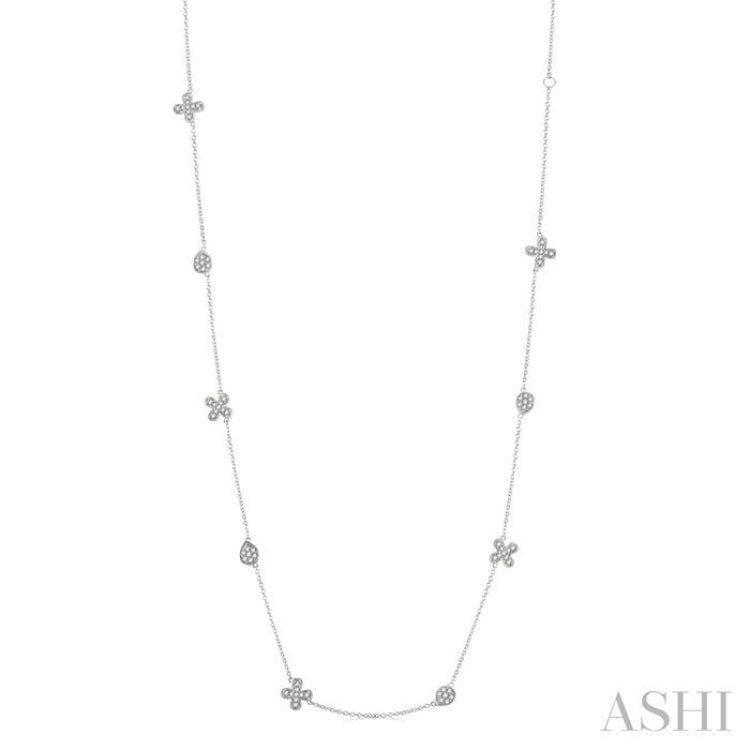 5/8 ctw Floral and Pear Shape Round Cut Diamond Station Necklace in 14K White Gold