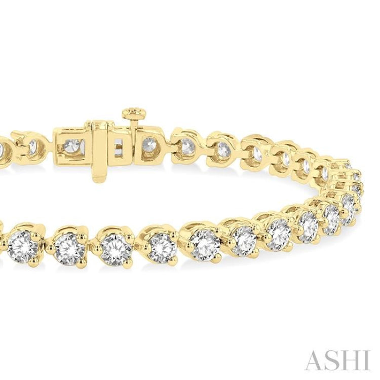 7 Ctw Tri-Prong Round Cut Diamond Bracelet in 14K Yellow Gold