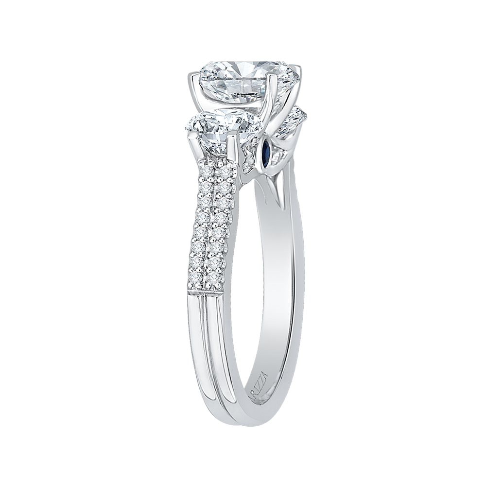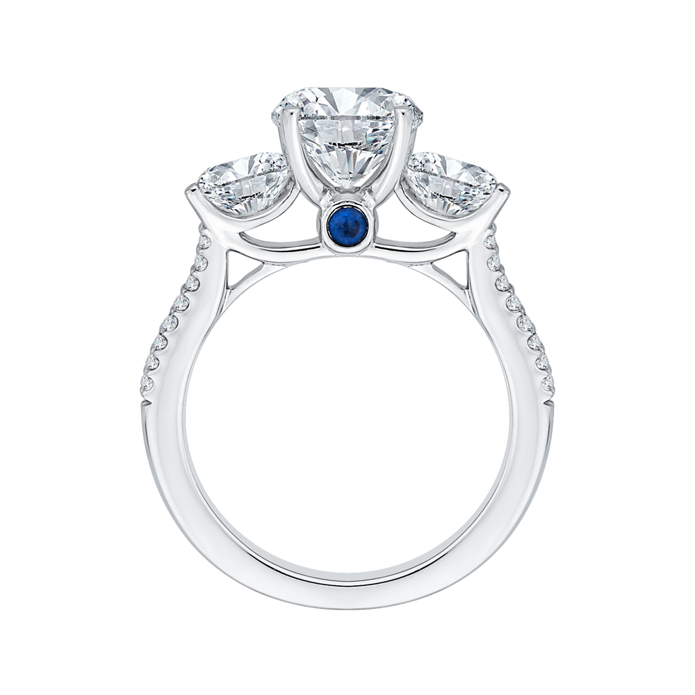 Diamond Three-Stone Cathedral Style Engagement Ring in 14K White Gold (Semi-Mount)