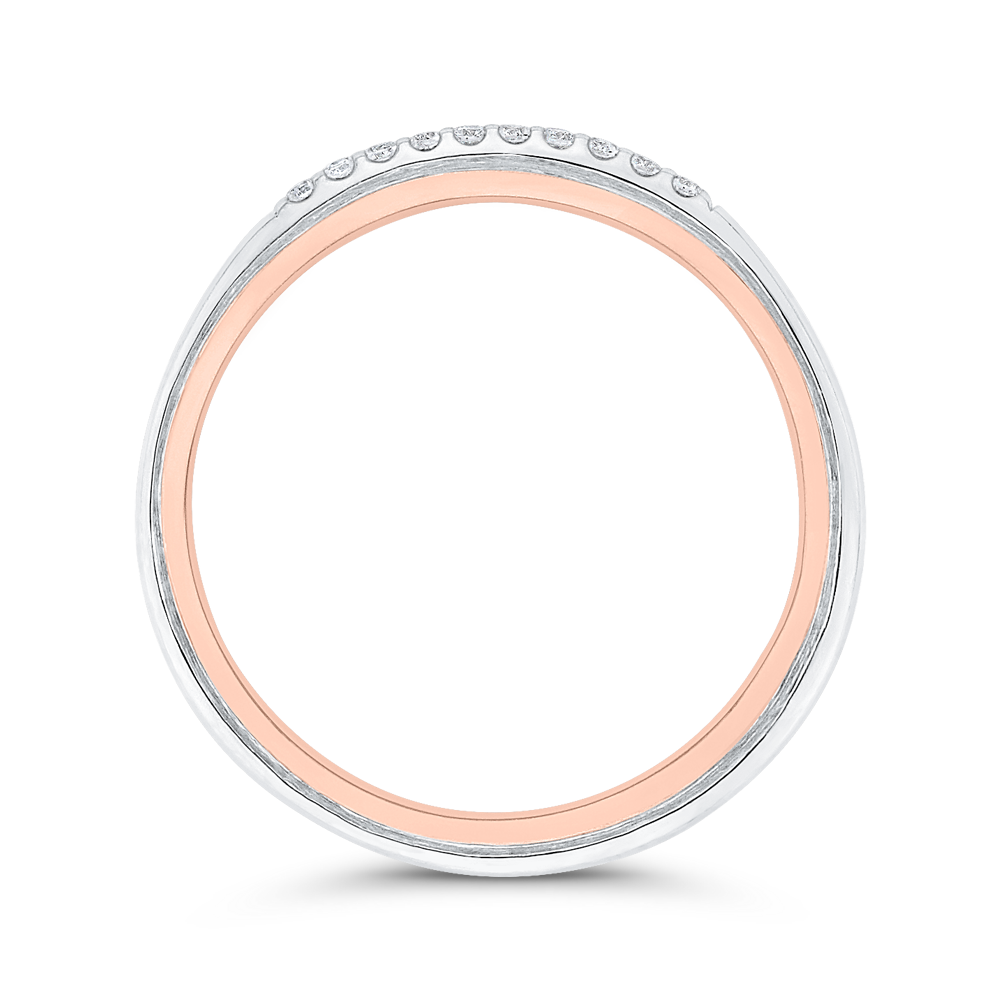 This exquisite diamond wedding band exudes timeless elegance in 14K two tone gold. The dazzling diamonds are expertly set in a classic design that symbolizes eternal love and commitment. A perfect choice for those seeking a sophisticated and luxurious piece to commemorate their special day.