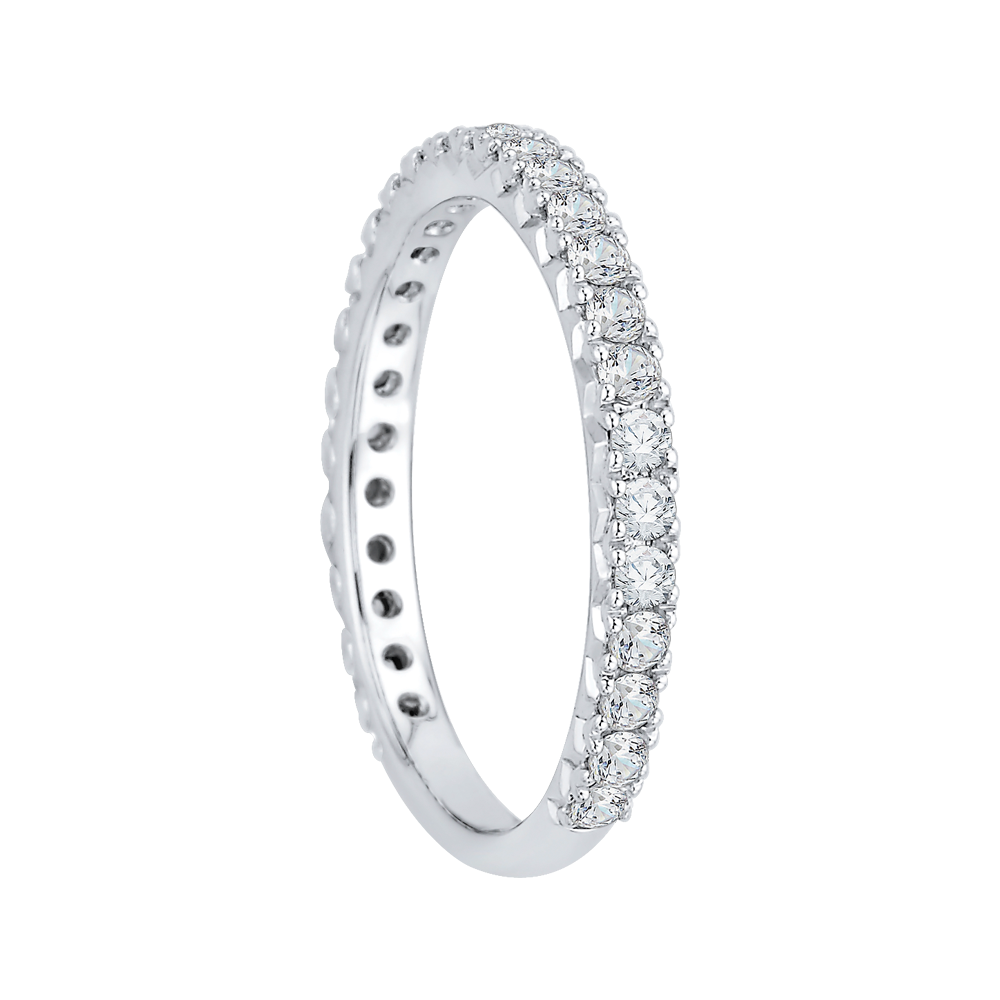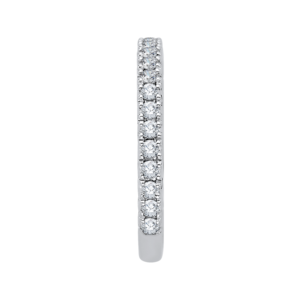 This exquisite diamond wedding band in 14K white gold exudes timeless elegance and sophistication. Crafted with precision and attention to detail, each sparkling diamond is expertly set to enhance its brilliance and beauty. A symbol of everlasting love and commitment, this stunning piece is the perfect choice for celebrating your special day.