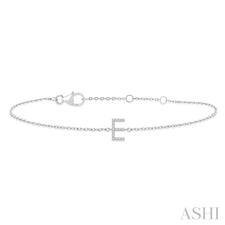 1/20 ctw Initial 'E' Round Cut Diamond Bracelet in 10K White Gold