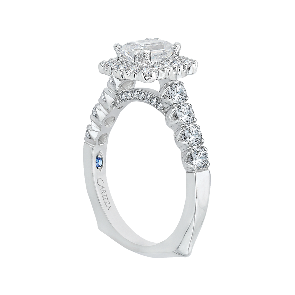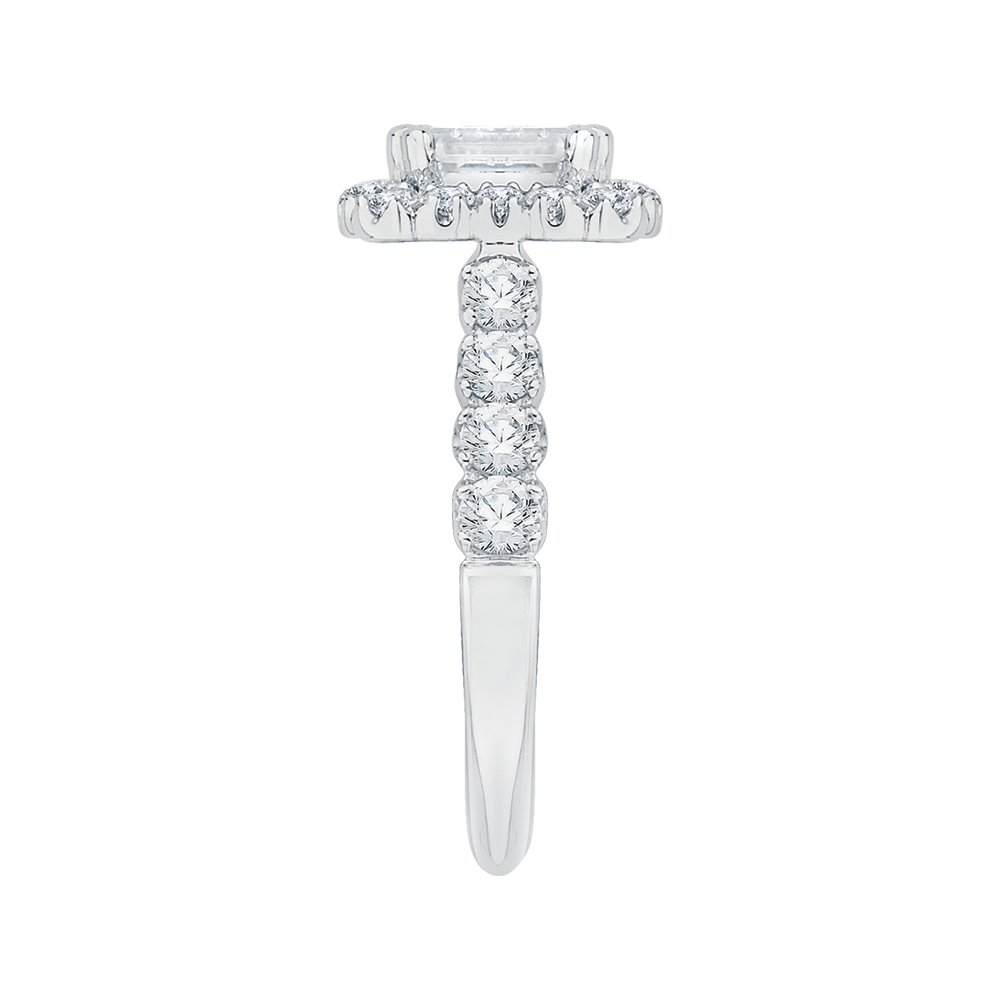Emerald Cut Diamond Halo Engagement Ring with Band in 14K White Gold (Semi-Mount)