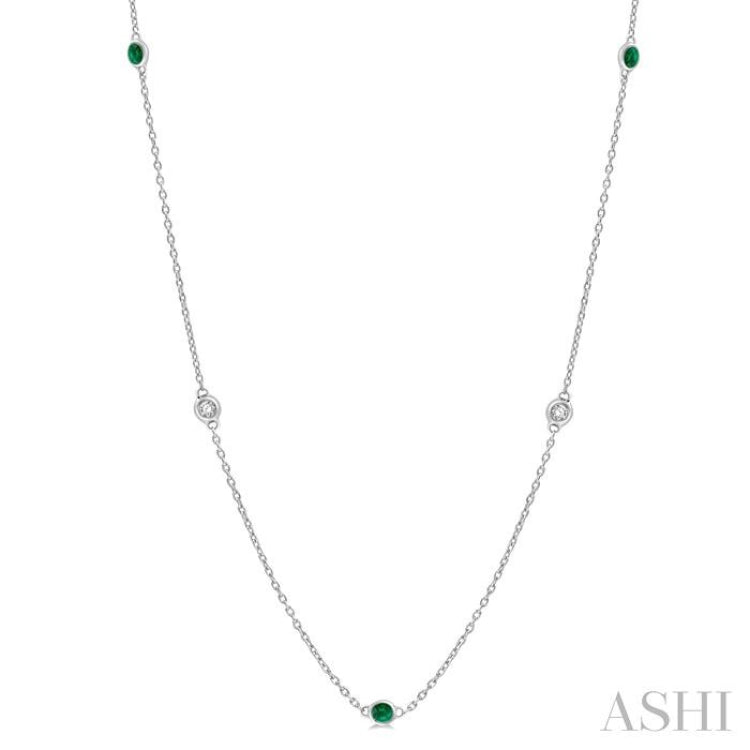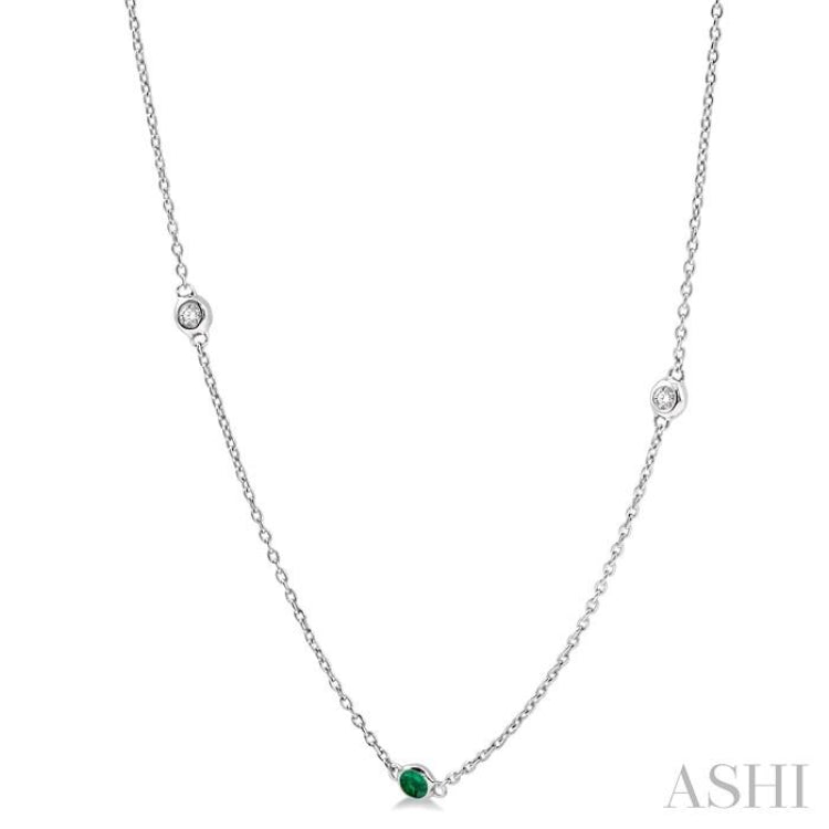 1/6 ctw Round Cut Diamond and 1.75MM Emerald Precious Station Necklace in 14K White Gold