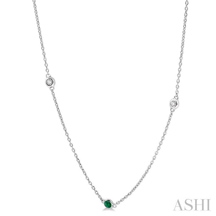 1/4 ctw Round Cut Diamond and 2.25MM Emerald Precious Station Necklace in 14K White Gold