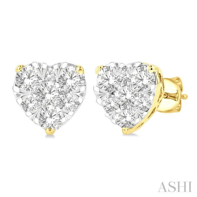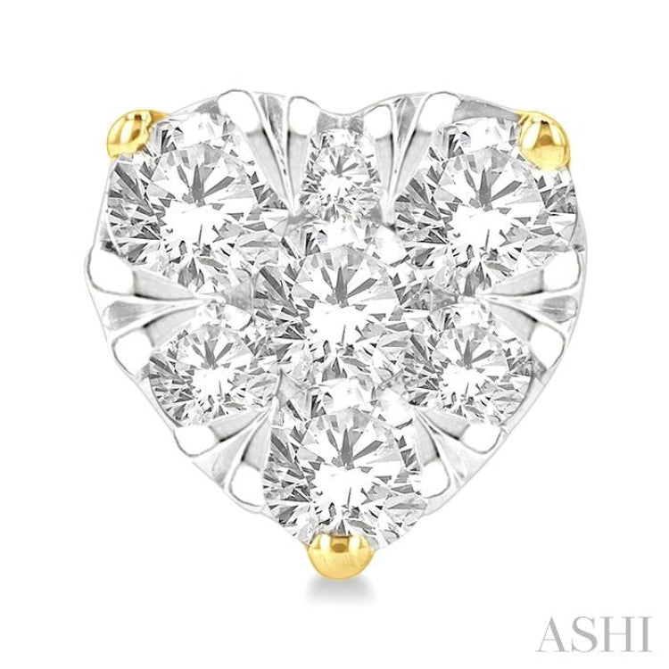 3/4 ctw Heart Shape Lovebright Round Cut Diamond Stud Earring in 14K Yellow and White Gold