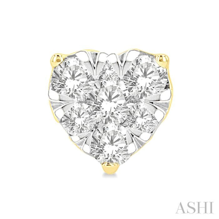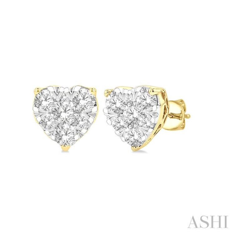 1/3 ctw Heart Shape Lovebright Round Cut Diamond Stud Earring in 14K Yellow and White Gold