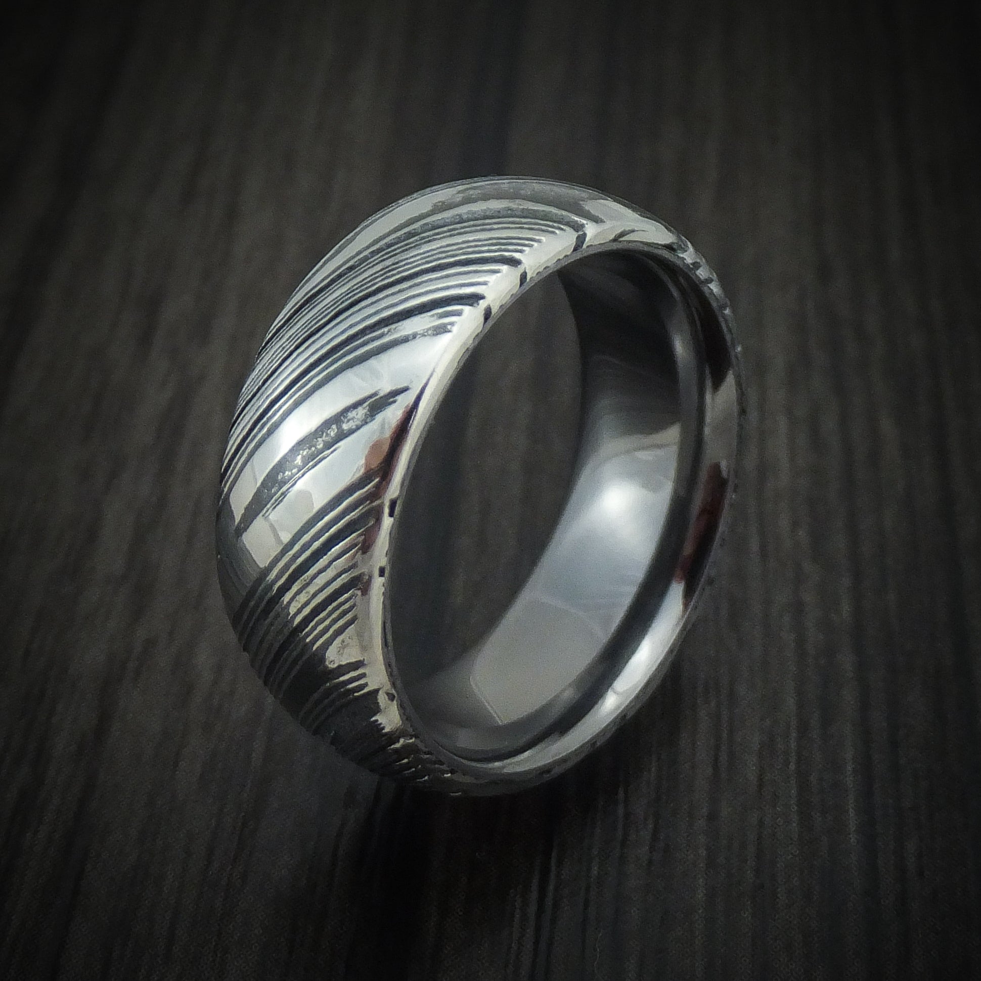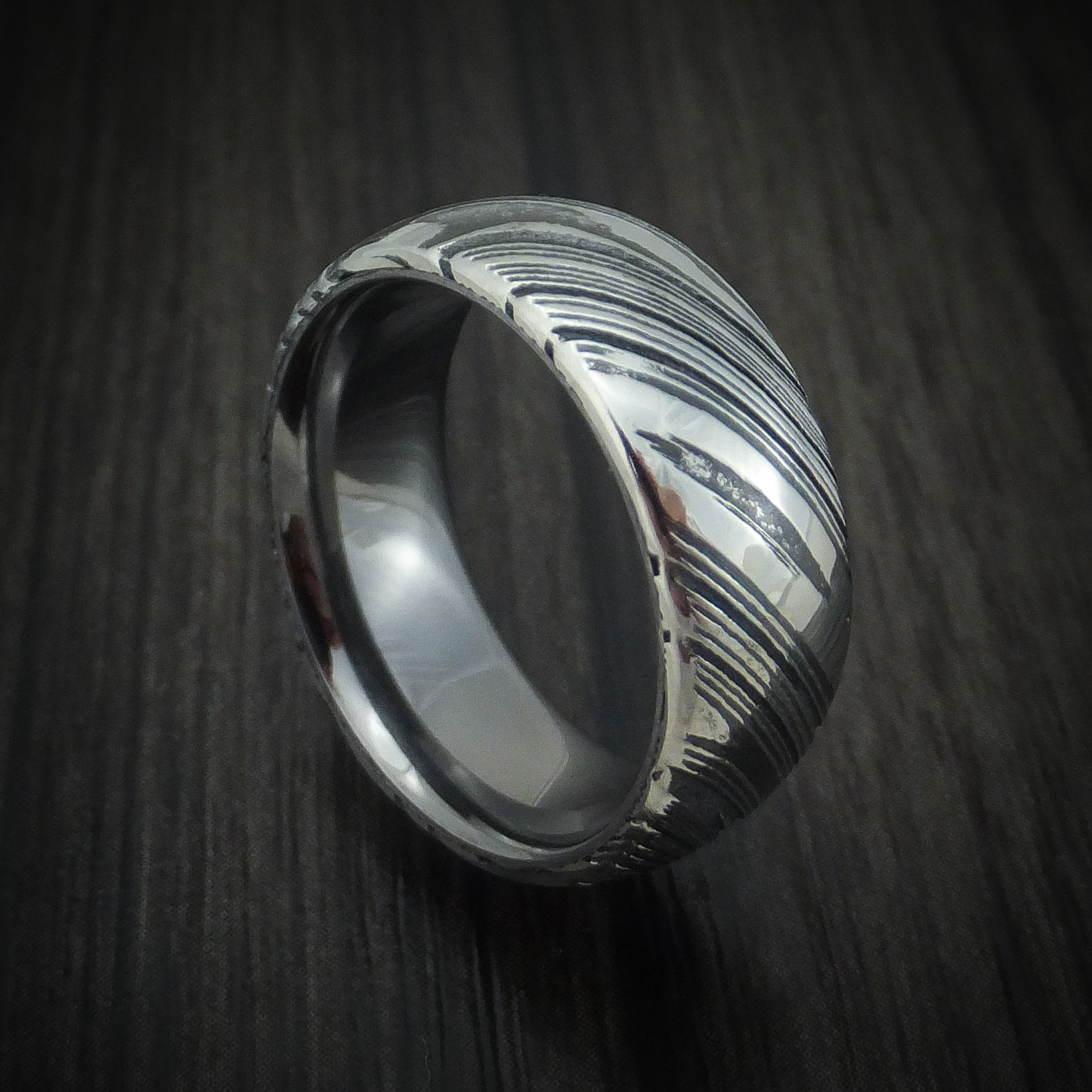 Kuro Damascus Steel Men's Ring with Tantalum Sleeve Custom Made